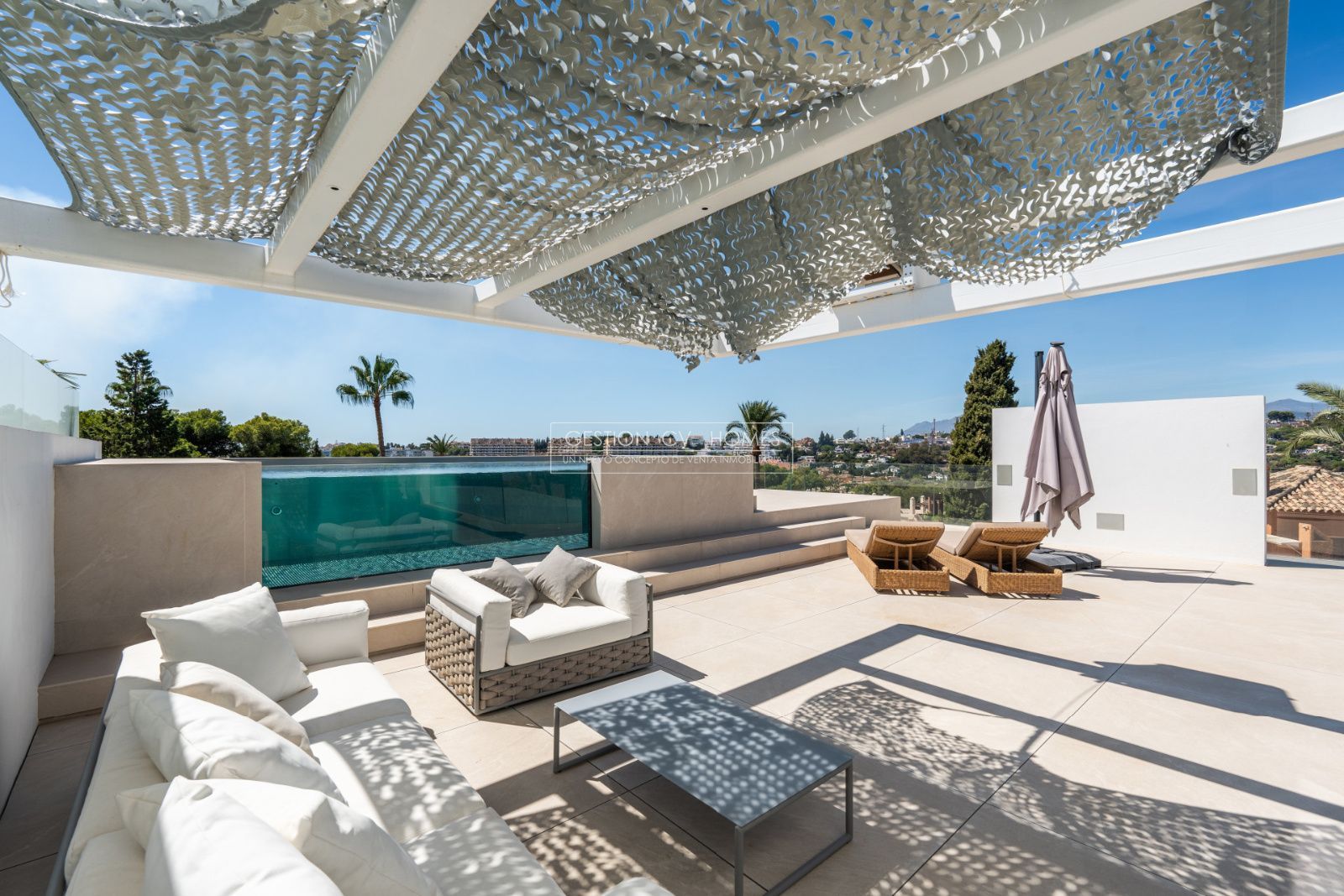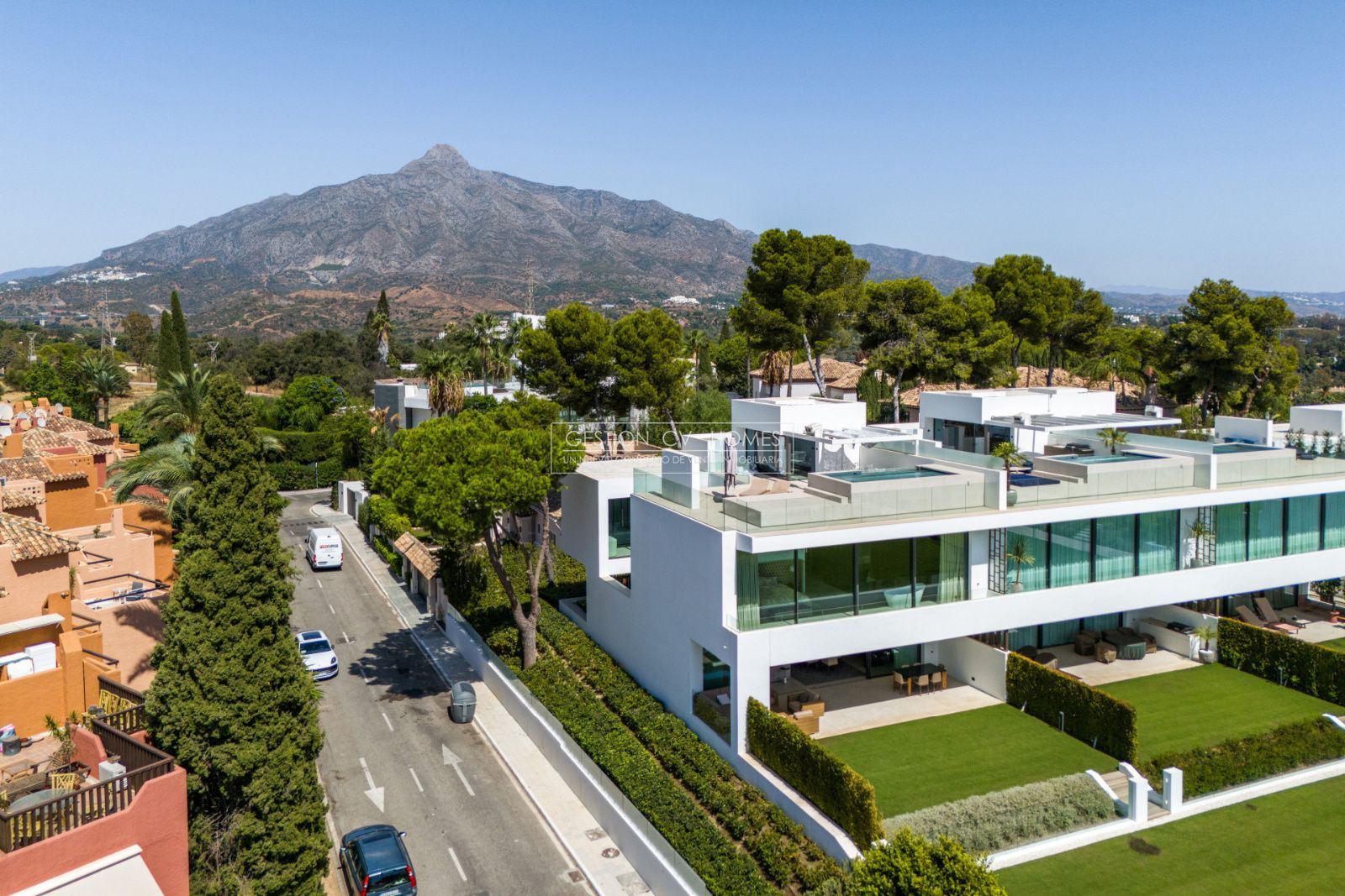 Situada en el corazón de Nueva Andalucía, esta villa adosada de nueva construcción combina arquitectura moderna, acabados de alta calidad y una ubicación privilegiada dentro de una urbanización cerrada y segura. Finalizada en diciembre de 2023, la residencia se distribuye en cuatro plantas con zonas exteriores privadas que se integran a la perfección con los interiores.