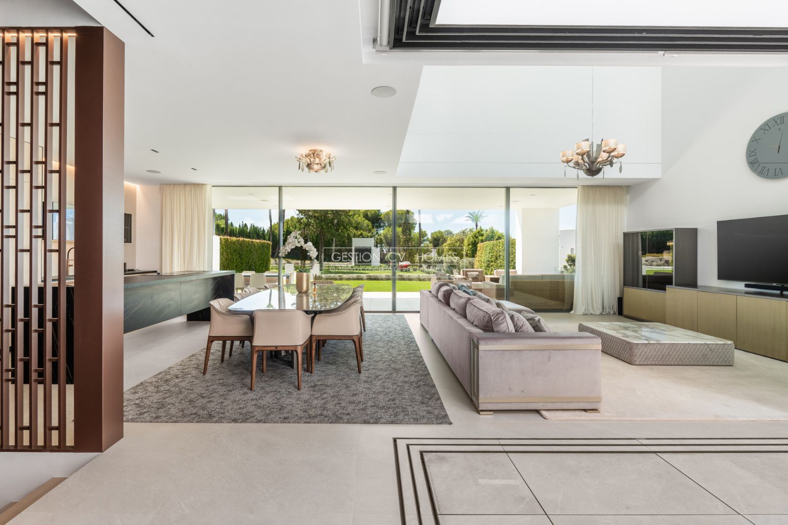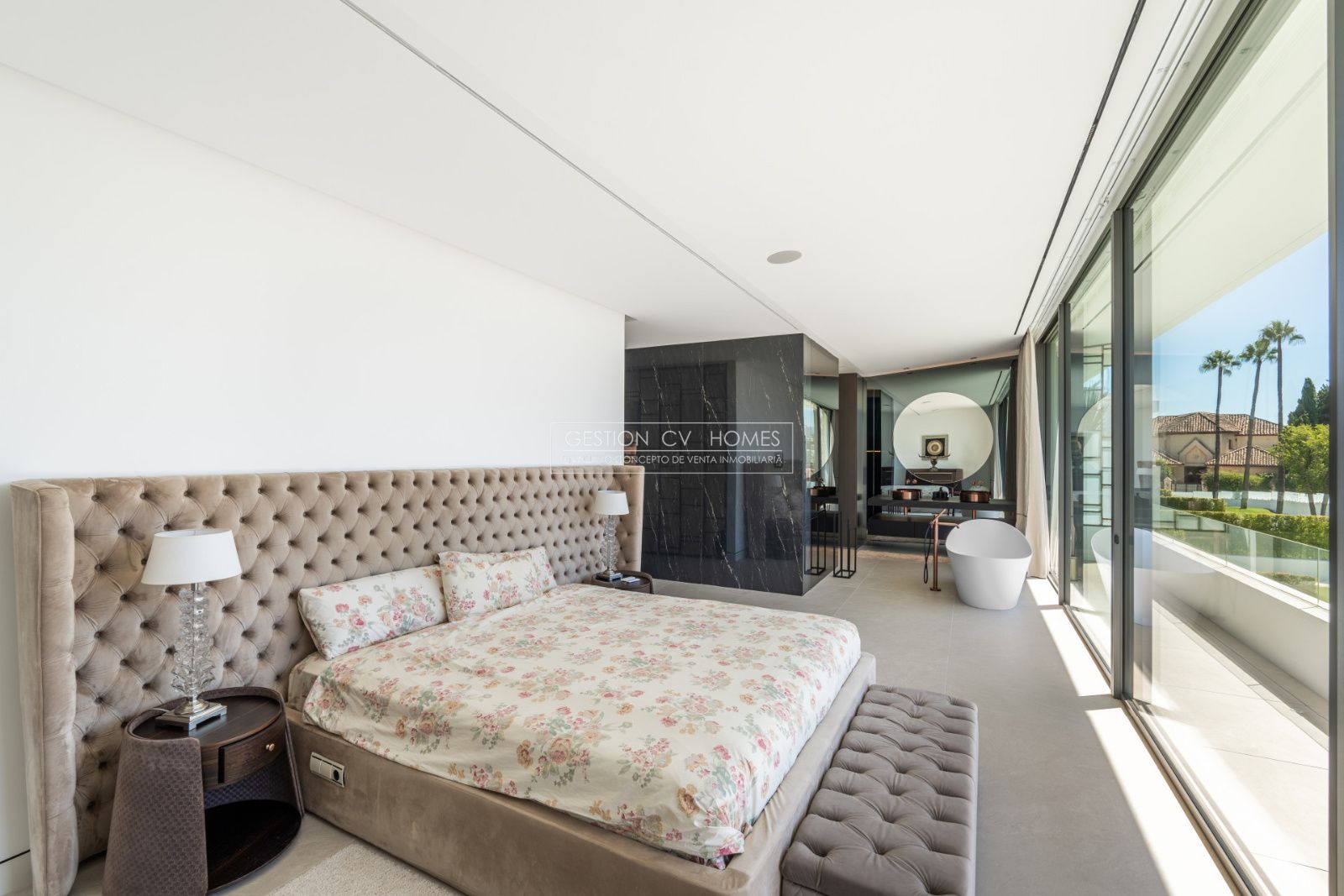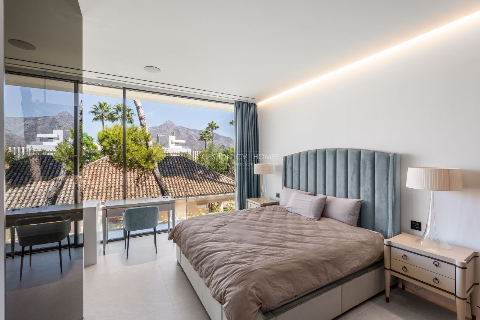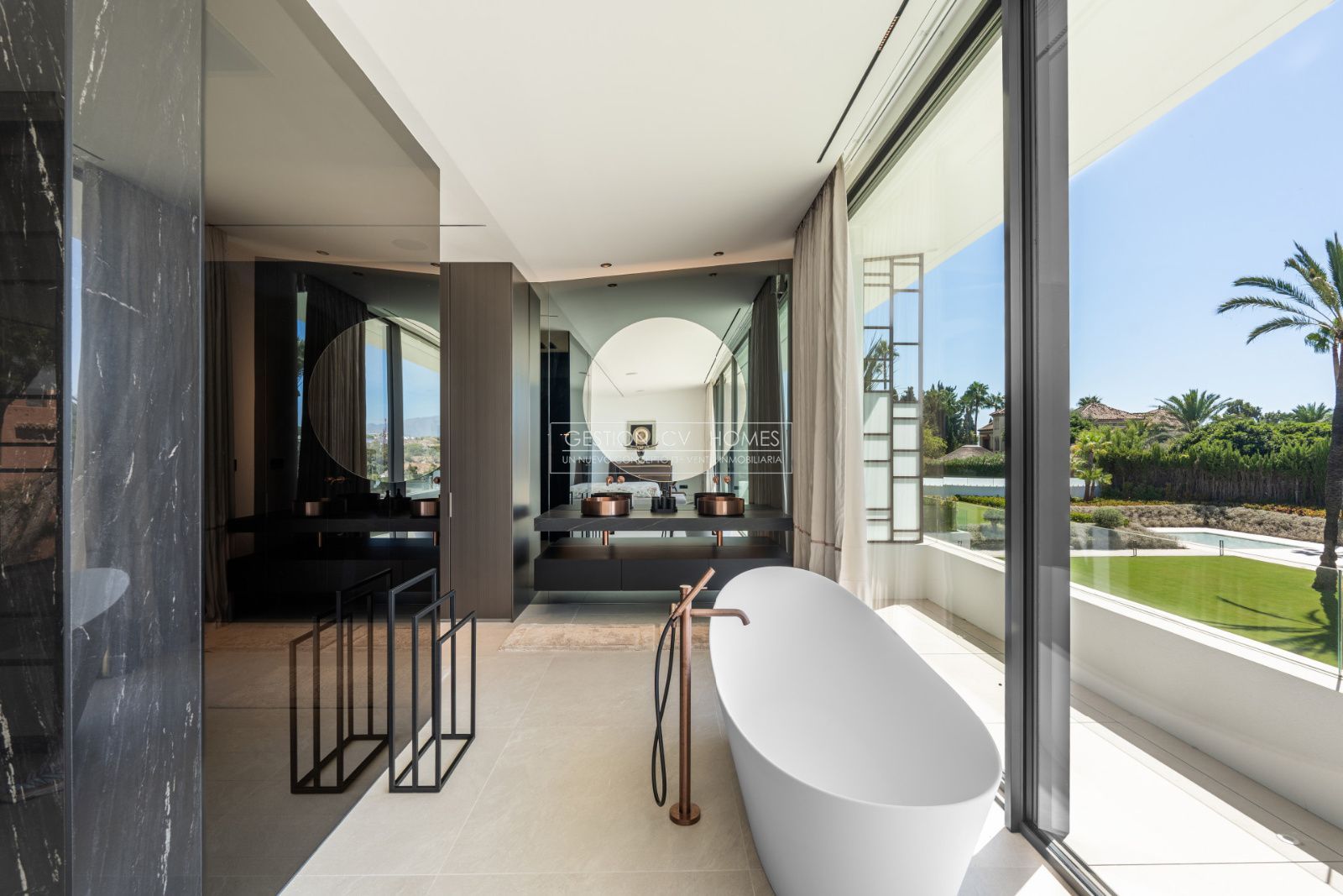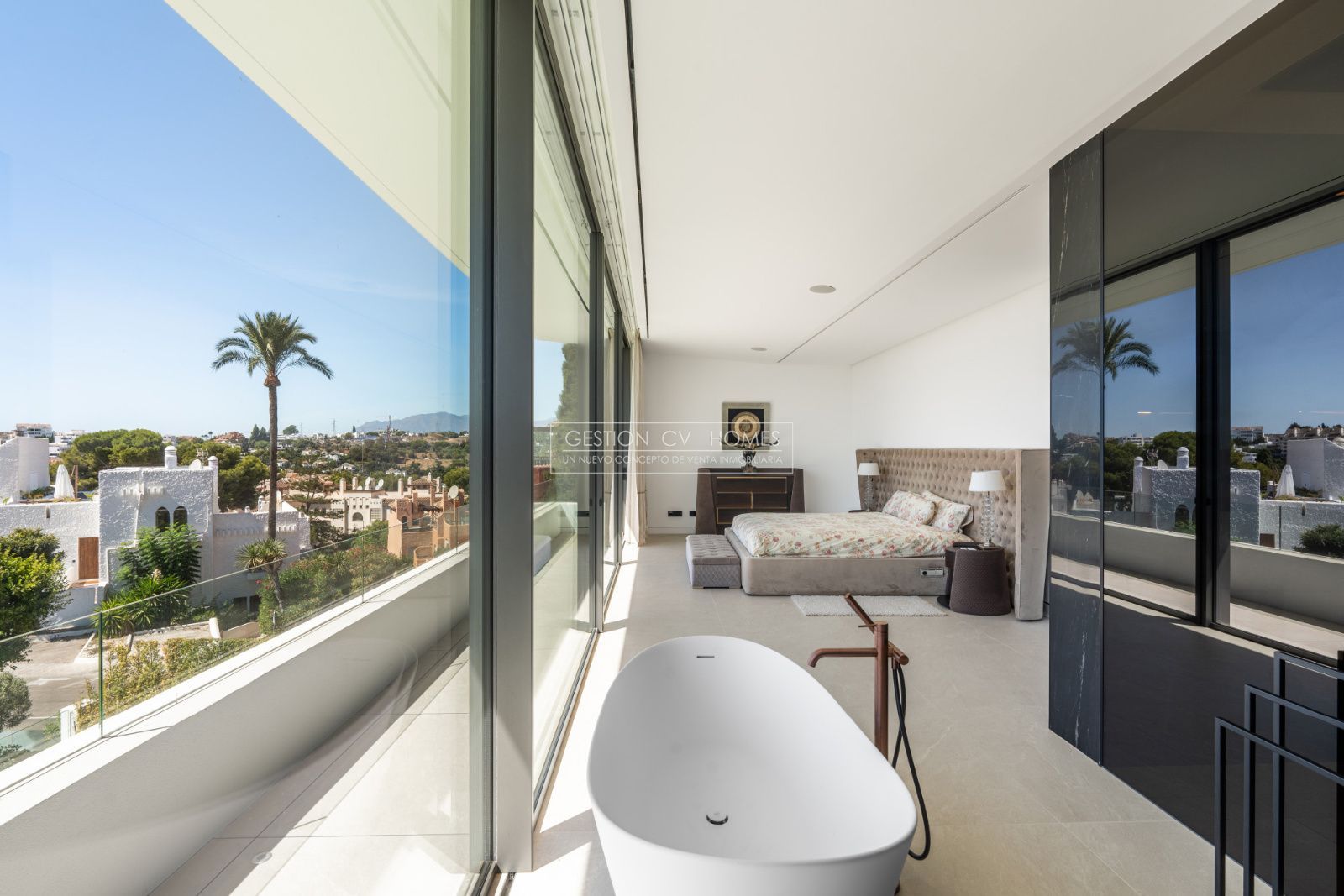 Orientada al sur, la villa disfruta de vistas panorámicas al mar Mediterráneo, La Concha y Puerto Banús. Los ventanales de suelo a techo y las puertas correderas de cristal aportan abundante luz natural a cada estancia, potenciando la conexión entre el interior y el exterior.