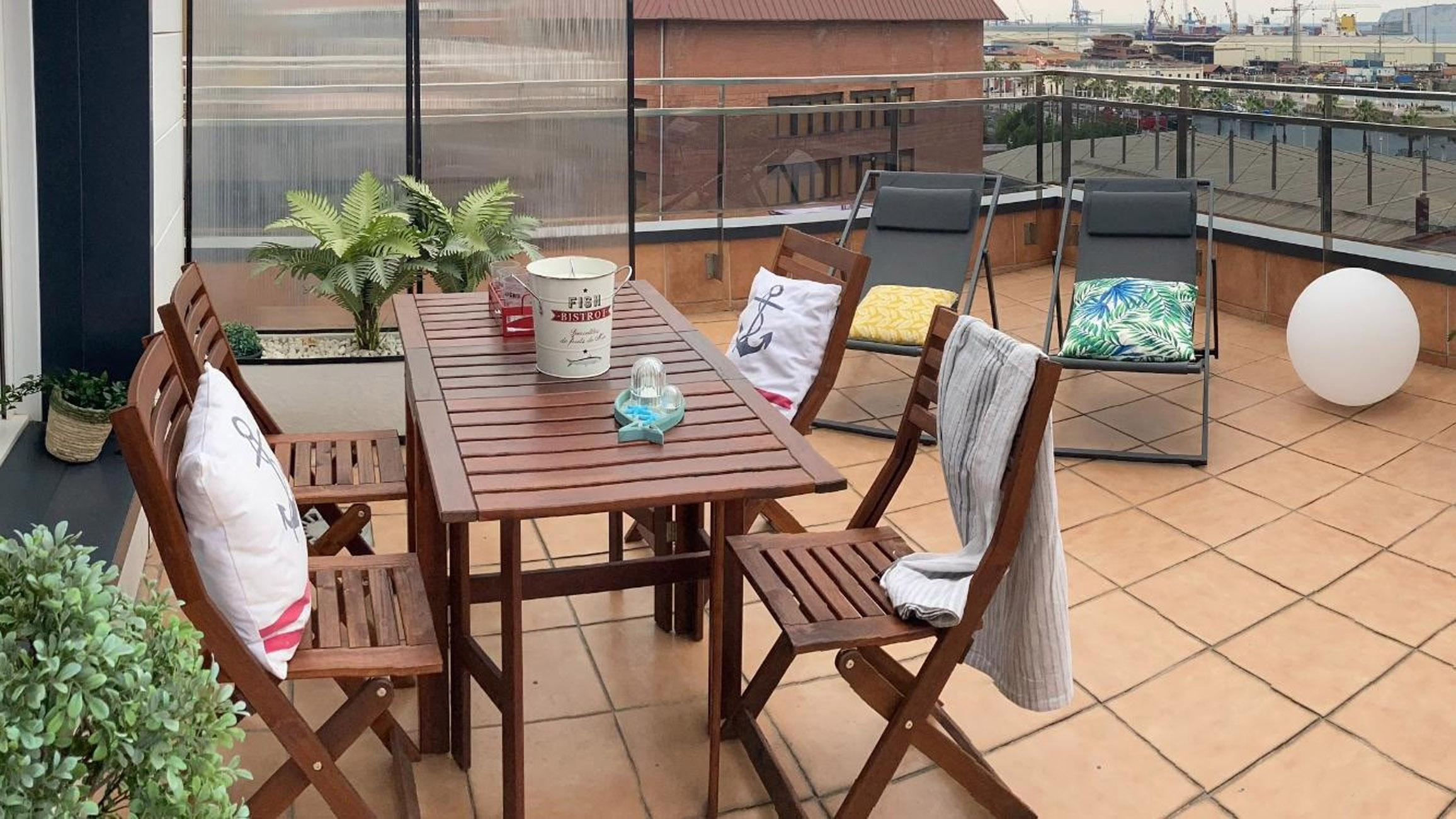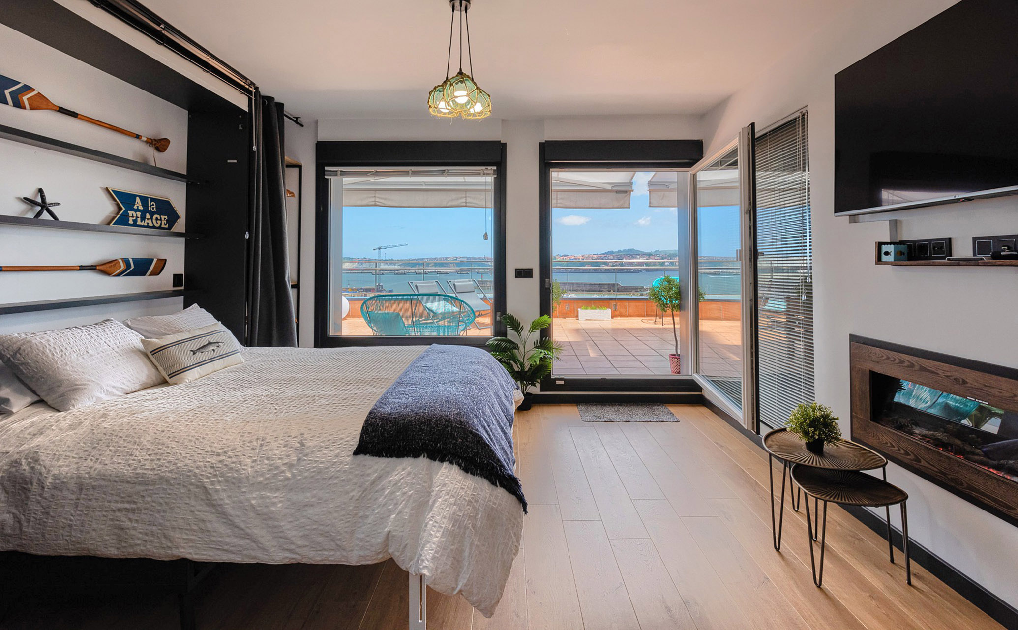 Desde este espacio podrás despertarte y desayunar en la terraza chillout, totalmente equipada y disfrutar del ambiente marinero de la localidad, desde la salida de veleros y barcos pesqueros, así como el diario entrenamiento de las traineras. Un lugar perfecto, para relajarse, comer en familia y contemplar las regatas, fuegos artificiales de fin de año y otras celebraciones marítimas.